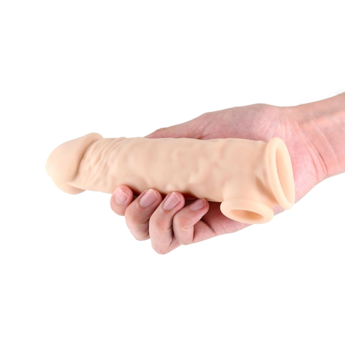 Pro silnější a tvrdší erekci s návlekem tělové opálené barvy realistického tvaru. Prodlouží penis až o 3,6 cm, jelikož disponuje plnou špičkou. Navíc tímto návlekem zvětšíte také průměr penisu minimálně o tloušťku stěny návleku, což může být až 0,9 cm.